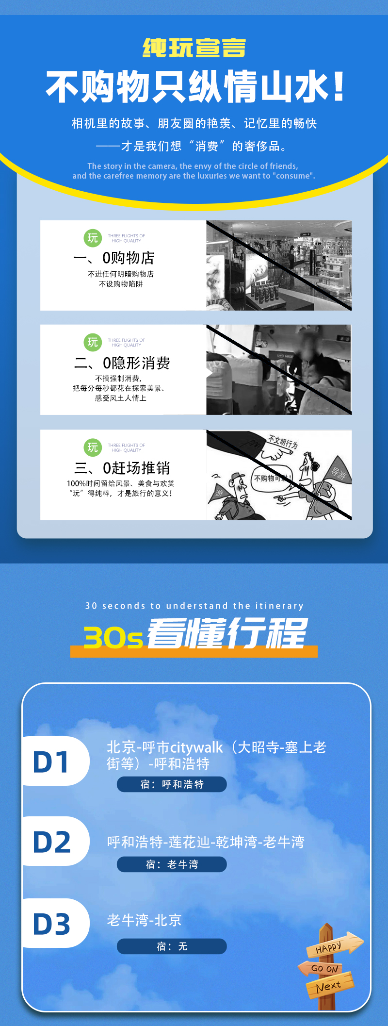 1)本活动属于户外旅行活动,纯玩,全程不进购物店,没有任何形式购物环节,领队也不作购物推荐,敬请谅解;同时本活动所有费用已明示(包括有可能您自愿自费的项目),无其它任何收费,请您仔细阅读费用包含和费用不含内容。