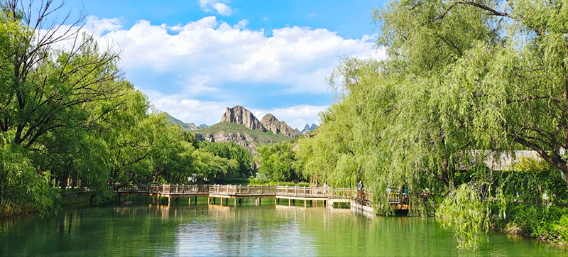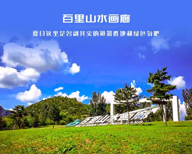 百里山水画廊有淮北山水之美,黄山之松,兔耳岭之草甸,苏州之美观。景区包括一环三区十二个空间节点,涉及滨河环线 112 华里,故而得名 “百里山水画廊”1。这里属暖温带大陆性季风气候的半湿润区,空气负氧离子丰富,年平均气温 8°C,年均降水量 477.2 毫米,四季景色变幻如画,是避暑胜地和绿色氧吧1。景区平均海拔 500 米,林木绿化率近 90%,水质优良,空气清新,年平均气温比北京市低 6-8 摄氏度,早晚温差大,最高气温很少超过 30 度。