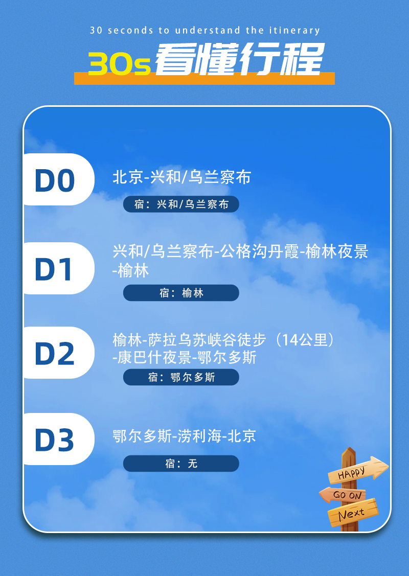 - 晚上请按集合信息准时集合出发,车上领队讲解未来行程,当晚宿兴和/乌兰察布。