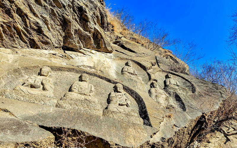 - 09:30|上午到达徒步起点,在领队带领下徒步穿越。主峰极乐峰海拔699米,是近郊最高峰。千灵山以佛教洞窟为特色,芦潭古道被当地人称之为御道,长约四公里的古道现在还较好地保存着,这段古道平缓入山,易于行走。我们穿越古寺古道,醉情山野间,感受山河涌动,生机勃勃景象。